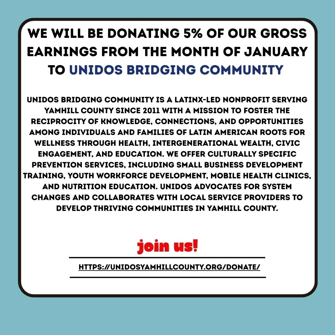 Beginning in June of 2020 we began to contribute 5% of our gross profits each month to organizations working to dismantle racism, homophobia, transphobia and working to ease food insecurities. We also give cash directly to people in need. We have donated over $80,000 to date. For a list of organizations that we have supported with these donations click here. If you have suggestions on organizations we should give to please email us!